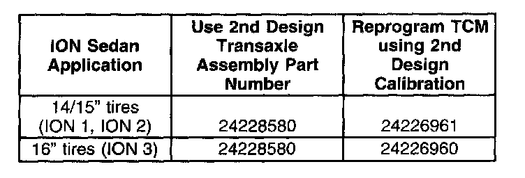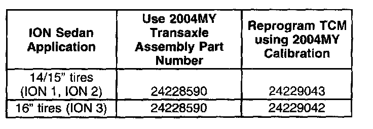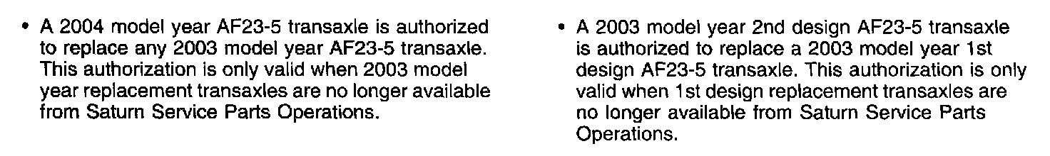 The purpose of this bulletin is to provide transaxle replacement guidelines for 2003 model year Saturn ION sedans equipped with AF23-5 transaxles. Refer to the replacement guidelines shown.
