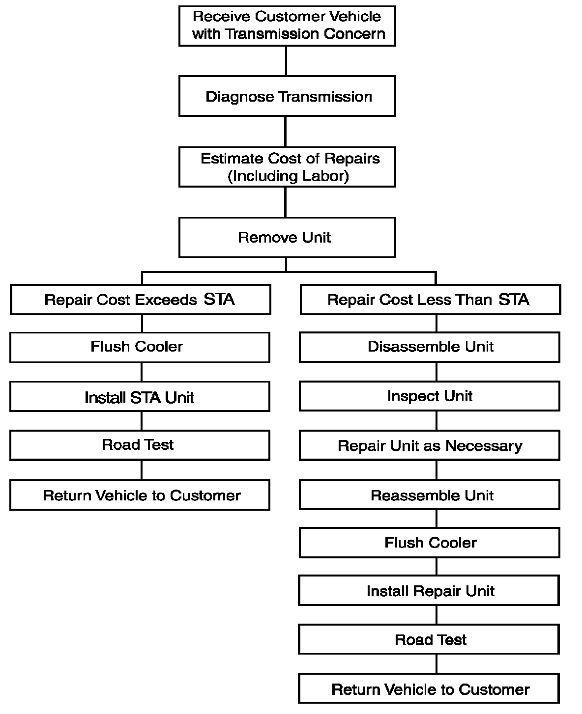 Use the flowchart in order to help determine if a transmission concern warrants a repair or STA replacement.
