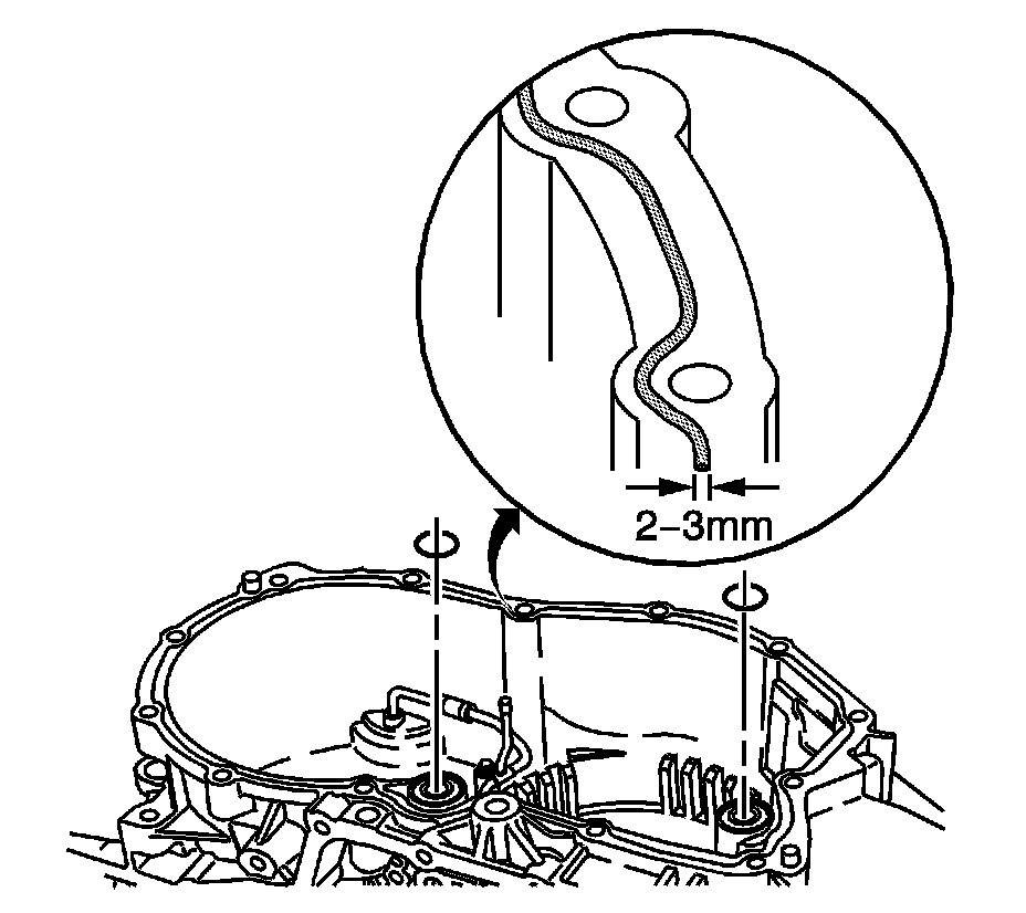 4. Notice: Use extreme care when applying sealant. Ensure the bead of sealant does not exceed 1 - 2 mm (0.04 - 0.08 inch). Excess sealant inside the transmission may cause restrictions resulting in various performance and noise complaints.