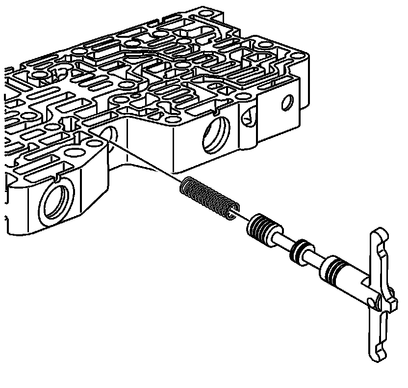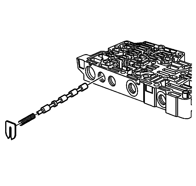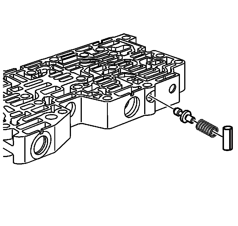 5. Inspect the control solenoid valve locator pin in the control valve body assembly for damage. Replace the pin if necessary.