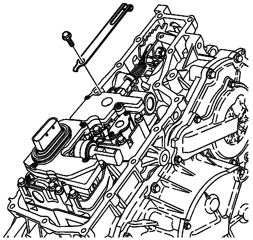 3. Remove the bolt and manual shaft detent assembly from the control valve body assembly.