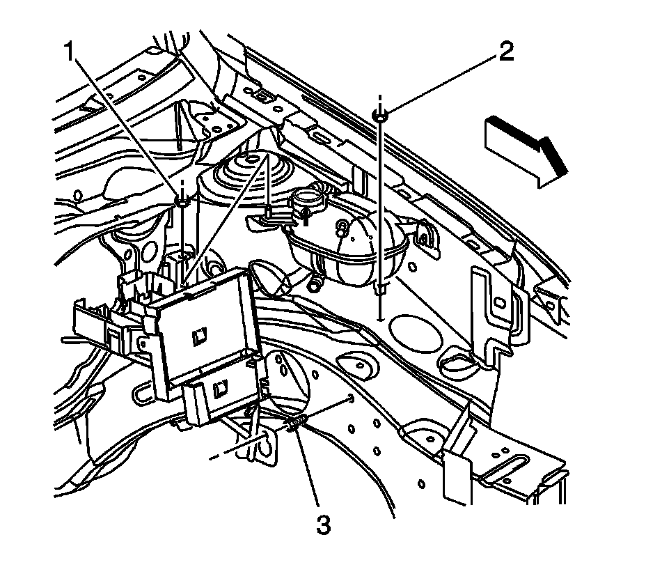 6. Loosen the underhood junction block bracket bolt (3).