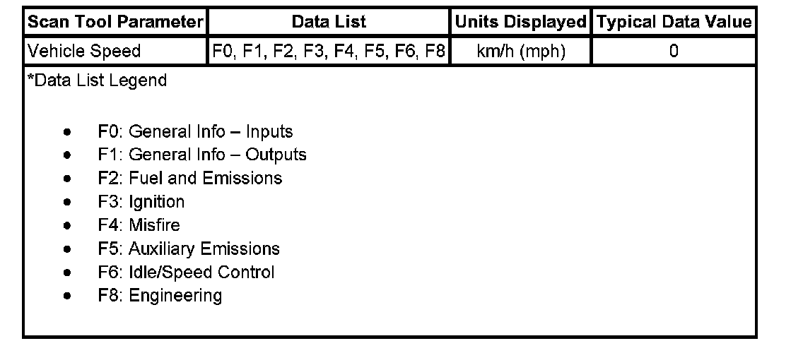 Scan Tool Data ListUse the scan tool data values under the following conditions: