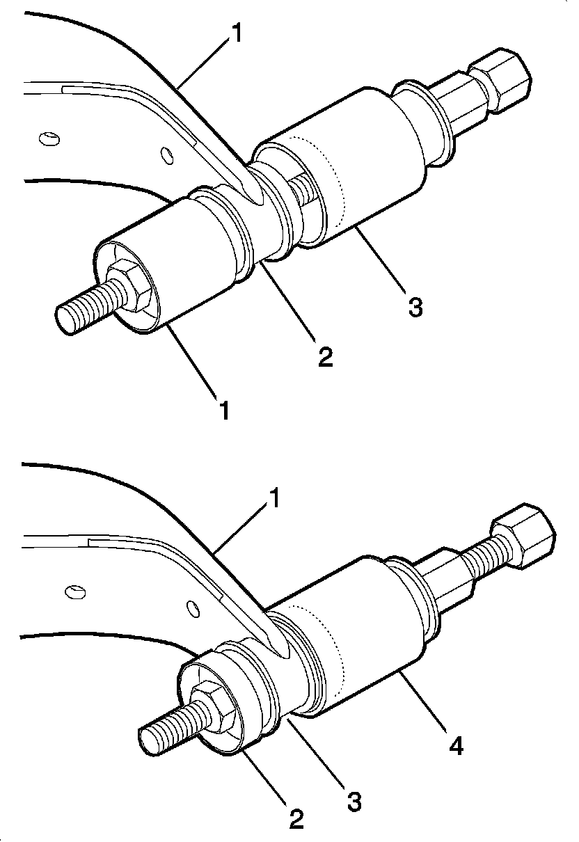 2. Using the KM-907 , install the KM-907-11 KM-907-12 and the KM-907-30 in order to press out the center damping bushing.