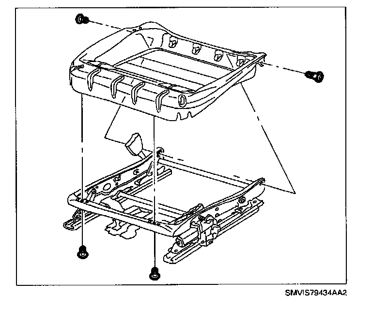 12. Remove seat cushion carrier fasteners and remove seat adjuster.