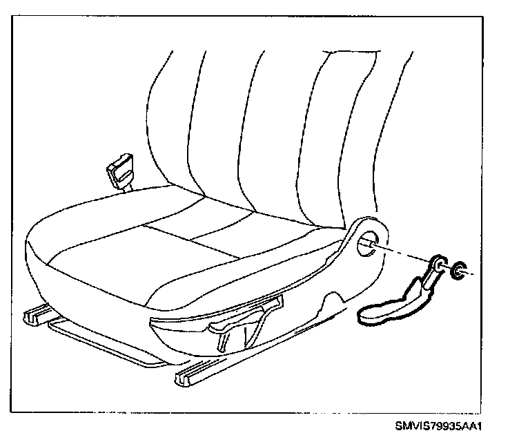 7. Strap seat belt buckle to seat adjuster in locations where old straps were removed.