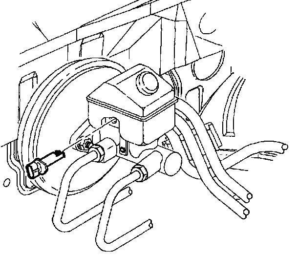 2. Remove low brake fluid switch by squeezing in tabs on opposite end of switch and pulling outward.