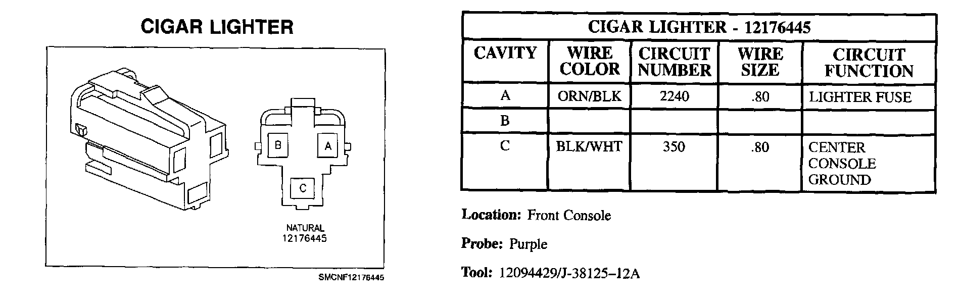 Cigar Lighter/Auxiliary Power Connector Face Views: