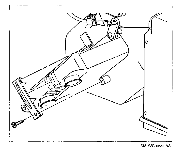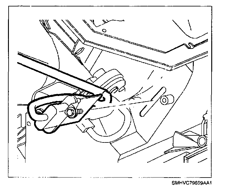 25. Install temperature door cable eyelet over temperature door lever. Do not install housing into retaining clip at this time.