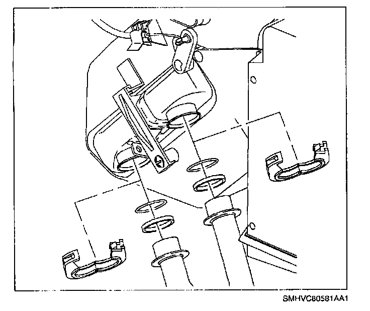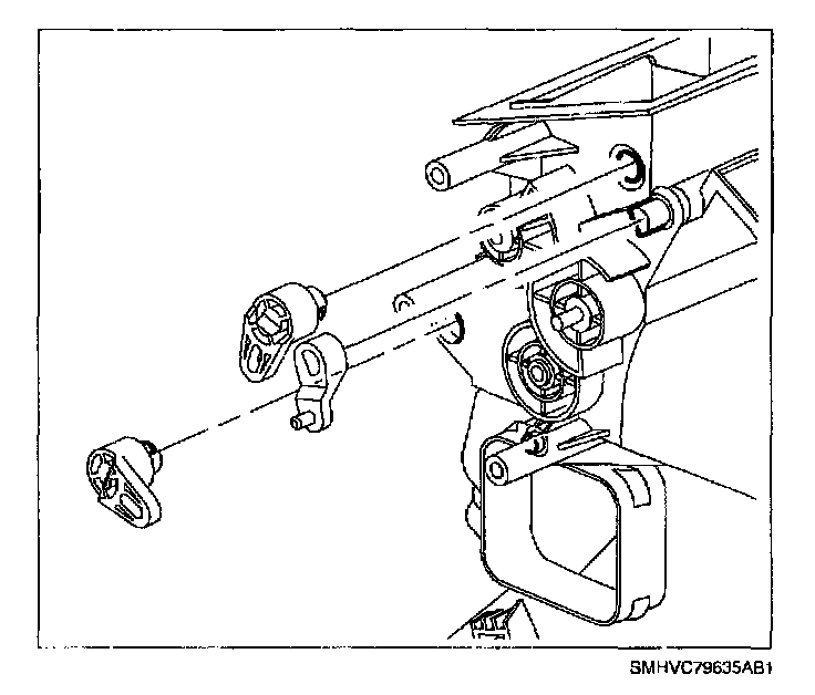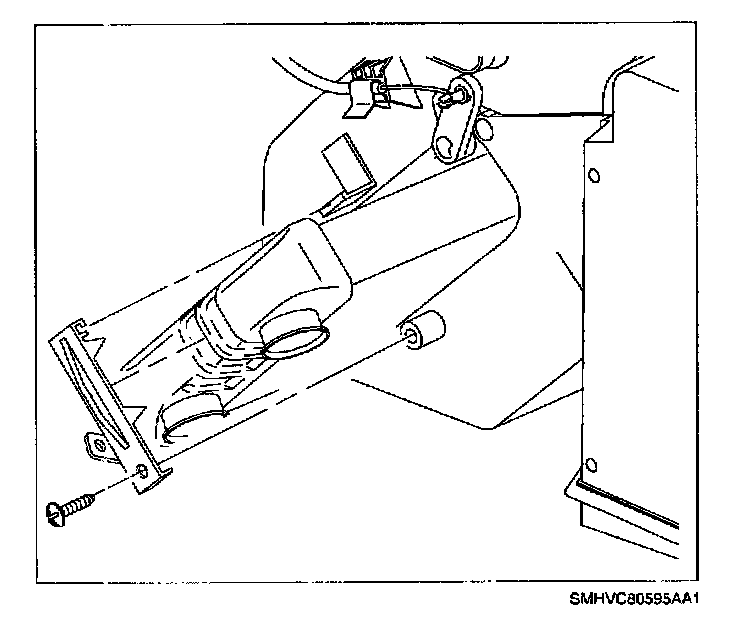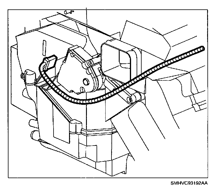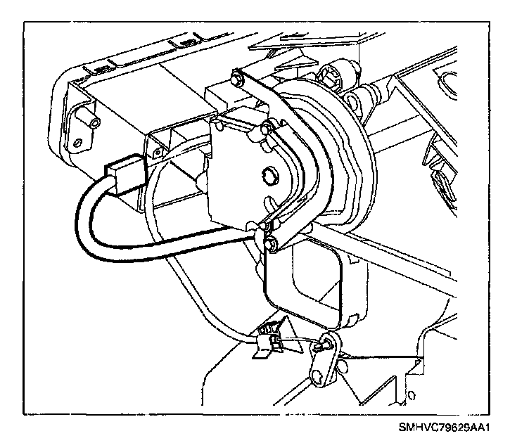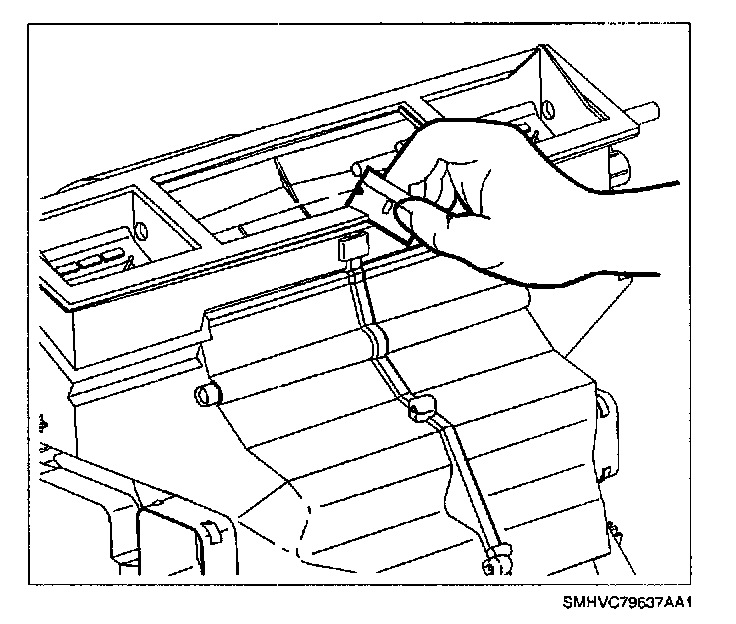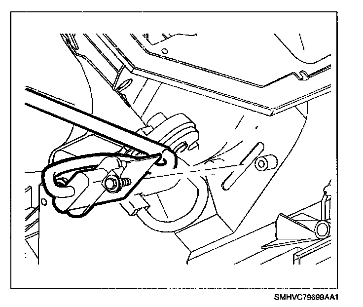Standard HVAC Vehicles Only:1. Remove temperature cable housing from retainer clip and remove cable eyelet from temperature door lever.