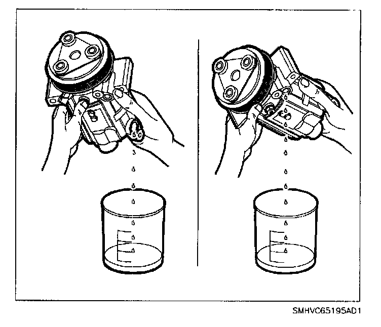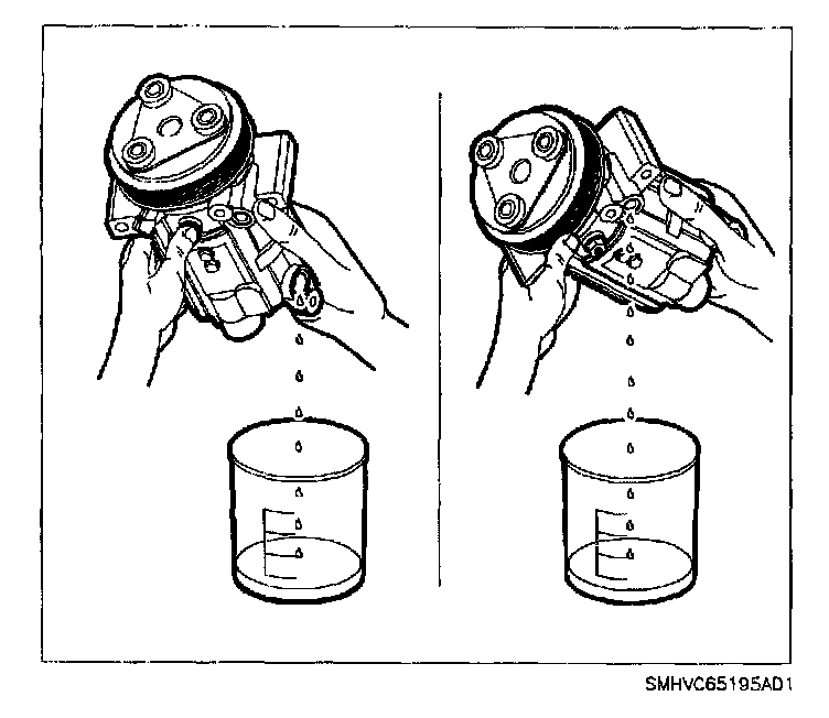 6. Drain the oil from the new A/C compressor into a clean, dry container.
