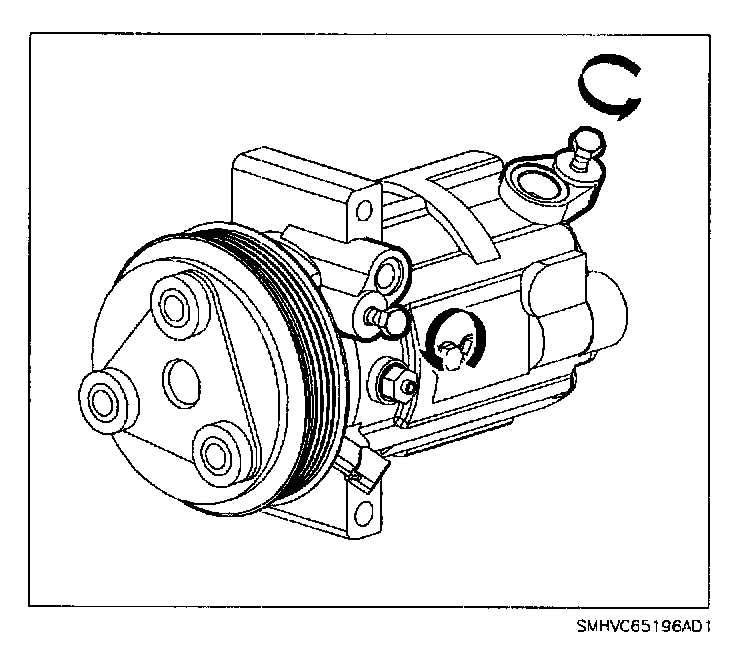 6.4 Rotate the A/C compressor drive plate in both directions to remove the oil from the A/C compressor chambers.