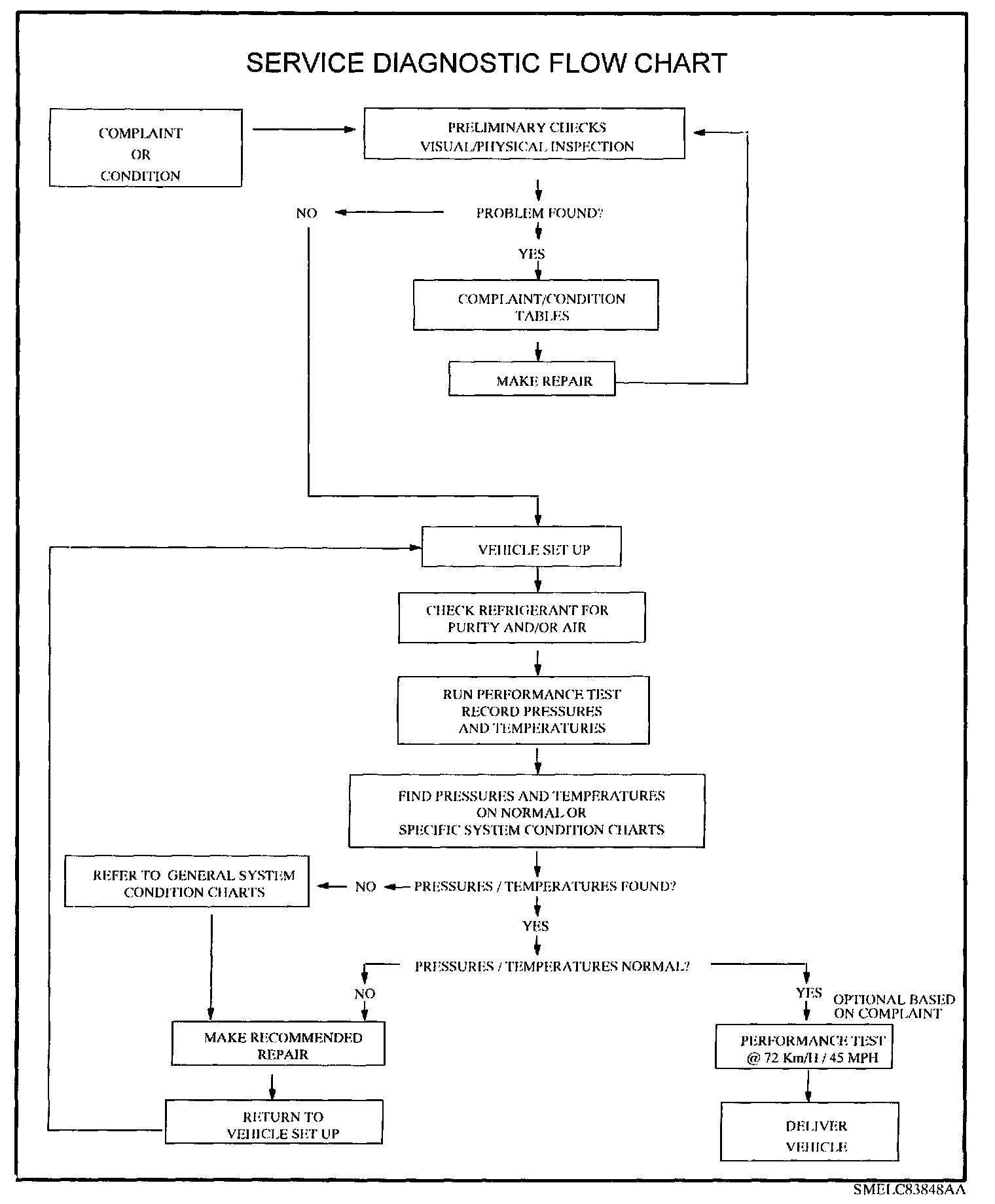 This chart is the starting point for verifying and diagnosing all air conditioning and HVAC control related complaints. It represents the correct path to follow from a customer complaint or condition through delivery of the vehicle.