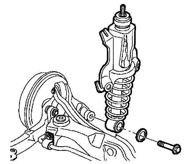 13. Remove shock absorber-to-control arm bolt and discard bolt.
