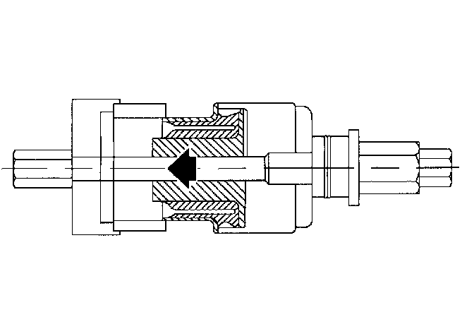 1. Using Bushing installation tools KM-671, KM-906-42, and KM-906-43 install rear axle control arm front bushing.