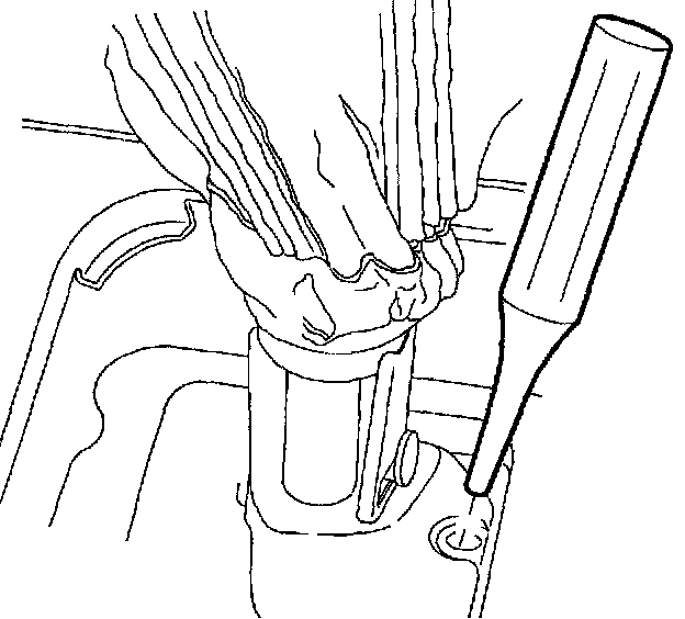 - If hole has a spring loaded locking pin, depress pin to lock transaxle shift control shaft in 5th/Reverse gate.