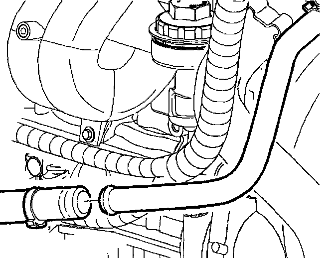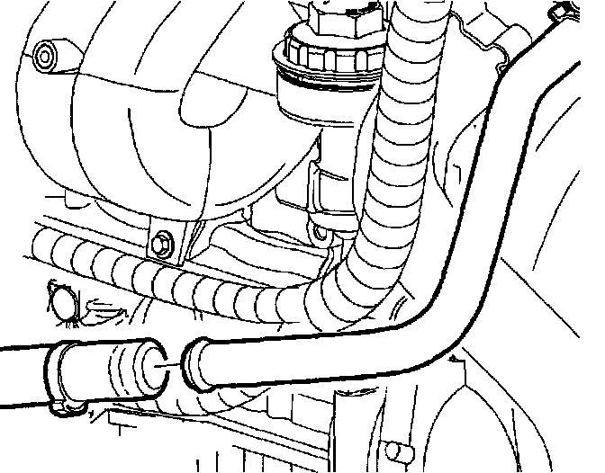 4. Remove clamp from A.I.R. hose behind the cooling fan.