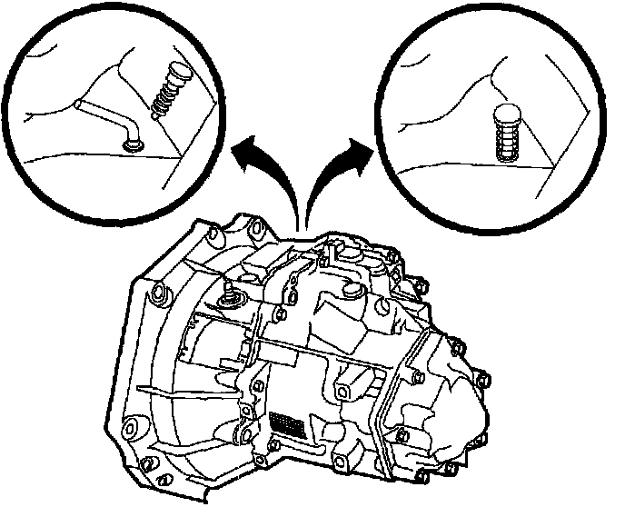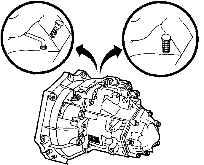 7. Lock transaxle shift control shaft in 5th/Reverse gate. There is a hole on top of transaxle that will have either a spring loaded locking pin or a hole plug.