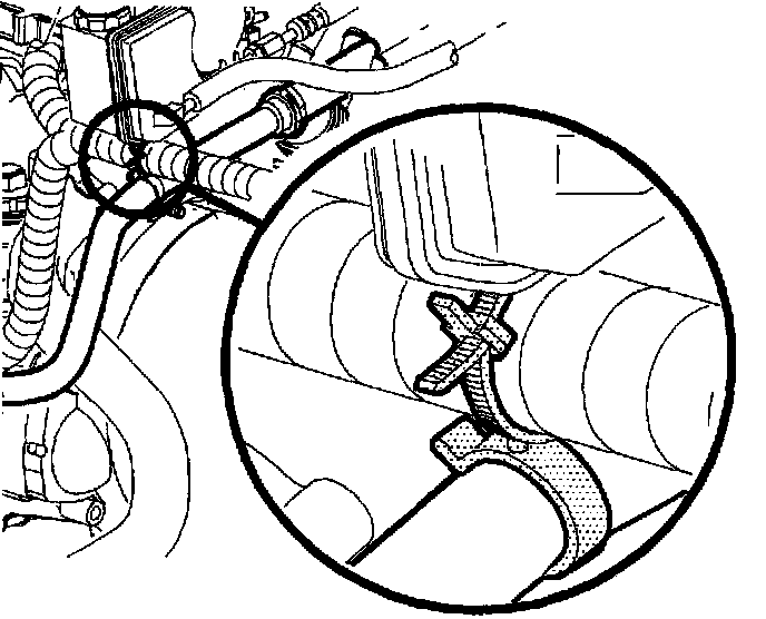 5. Install the hose clip to the two power steering lines.