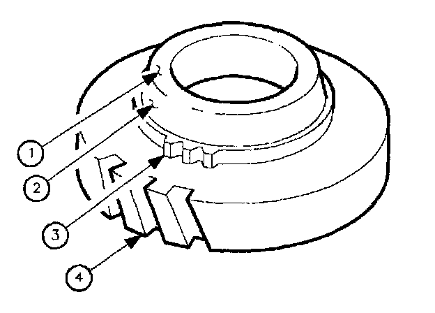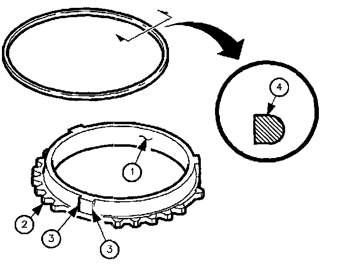 1. Inspect synchronizer blocker ring friction surfaces (1) for wear or damage.