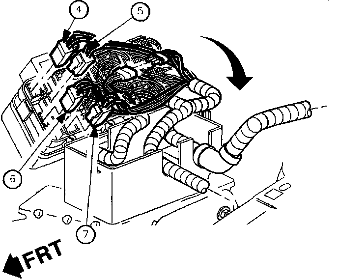 56. Remove A/C line retaining clips and drop A/C line down from body as shown.