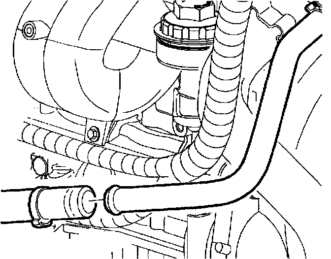 12. Remove clamp from A.I.R. hose behind the cooling fan.