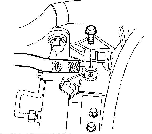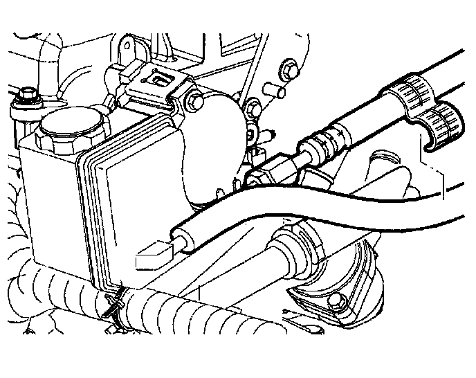 14. Remove the hose clip holding the two power steering lines together.