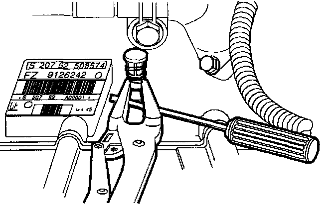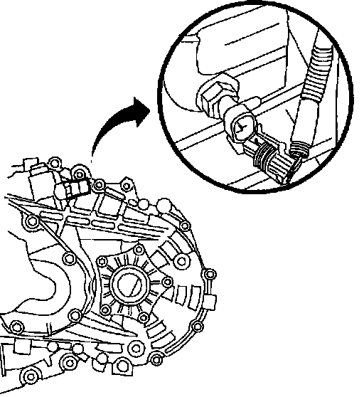 22. Remove clutch hydraulic fitting from transaxle. Elevate and secure fitting to prevent excessive loss of brake fluid.