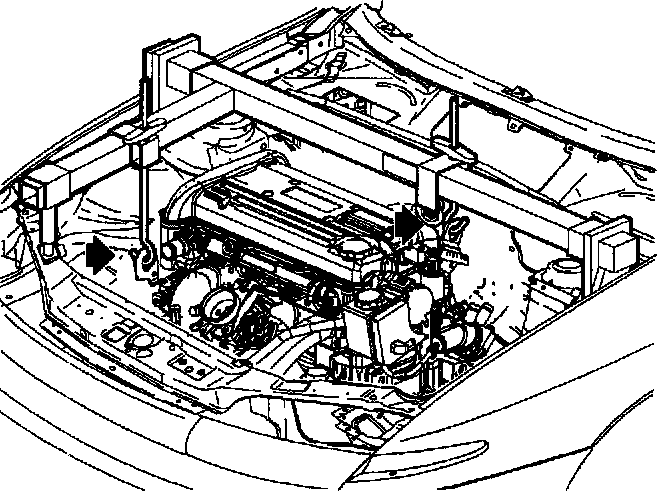 24. Install Engine Support Bar Assembly SA9105E with adapter kit Engine Support Fixture Adapter J43405 as shown.