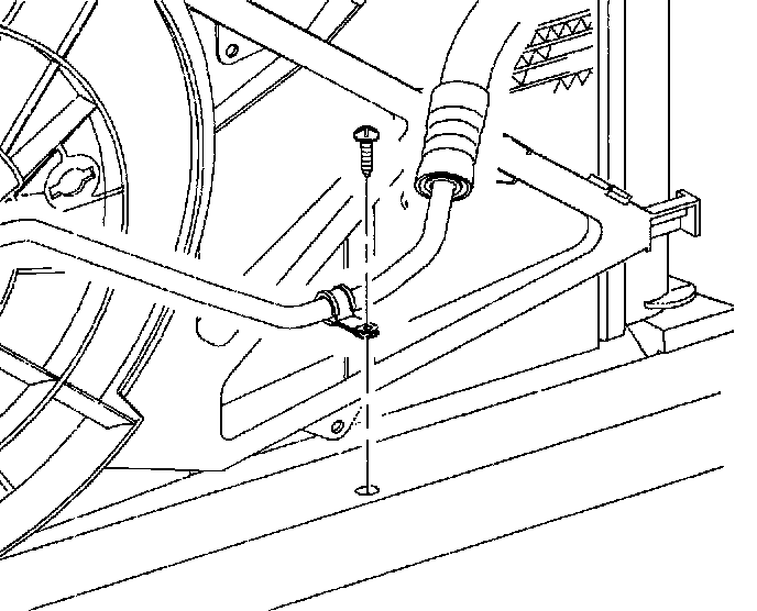 NOTICE: If A/C line is not removed and lowered from body prior to lowering powertrain, engine crankshaft pulley will damage A/C line possibly causing a freon leak to occur.