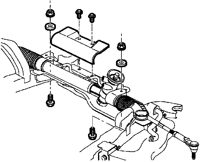 42. Remove steering gear-to-frame assembly bolts. (Automatic shown, manual similar.)