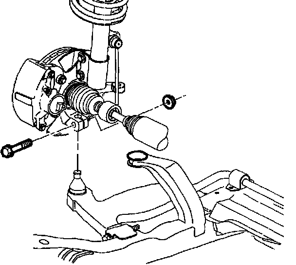 NOTICE: Hold ball stud from turning when removing nut. The boot can become torn and damaged if the ball stud turns.