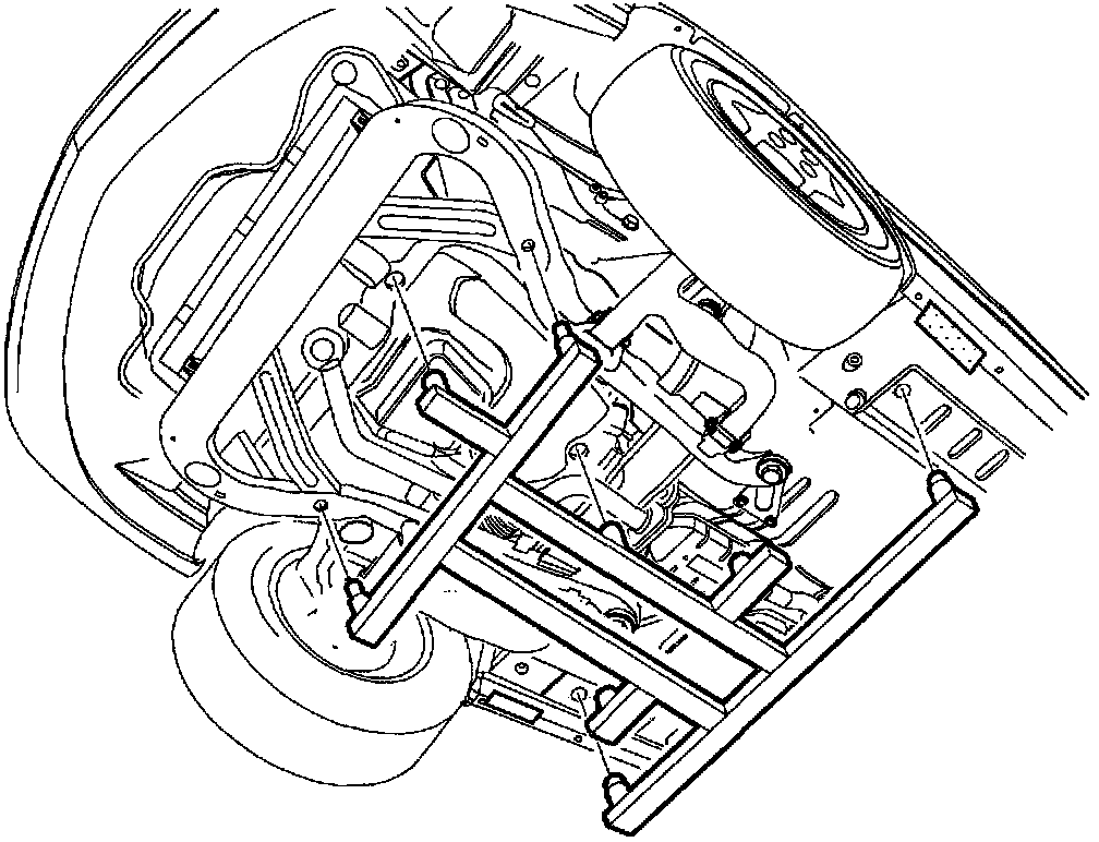 CAUTION: MAKE SURE VEHICLE IS PROPERLY SUPPORTED AND SQUARELY POSITIONED ON THE HOIST. TO HELP AVOID PERSONAL INJURY WHEN A VEHICLE IS ON A HOIST, PROVIDE ADDITIONAL SUPPORT FOR THE VEHICLE ON THE OPPOSITE END FROM WHICH COMPONENTS ARE BEING REMOVED.