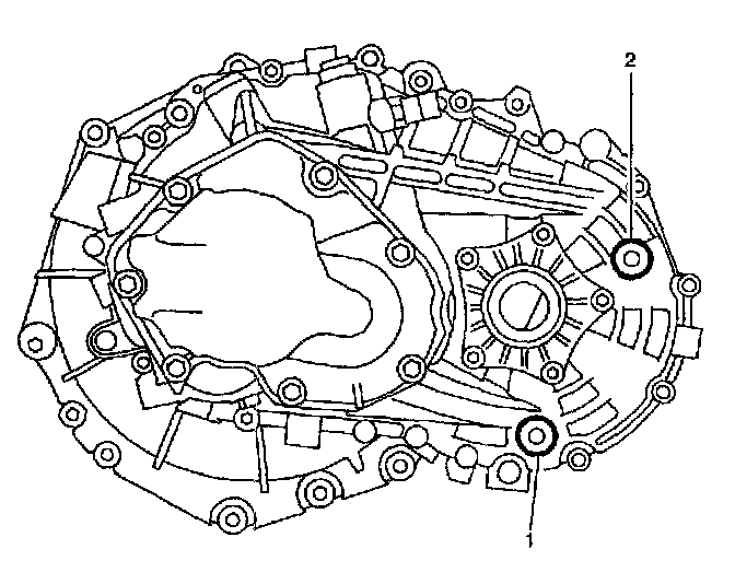 54. Drain transaxle fluid by removing transaxle drain plug (1)