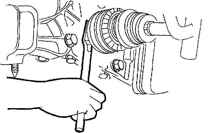 NOTICE: To prevent damage to CV joint boots, be careful not to allow them to contact other parts during the removal process. Also, never pull on the shaft assembly.