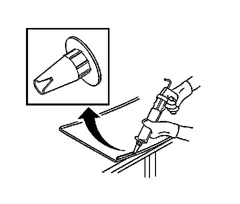 Important: Do not apply the black #3 primer to the existing bead of the urethane adhesive on the pinch-weld flange. Apply the primer only to nicks, scratches or the primed surfaces.