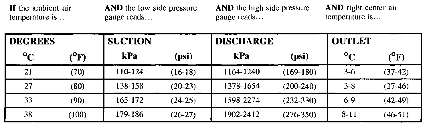 ^ This condition could generate an intermittent cooling complaint along with reduced air how because of evaporator freeze up at lower ambient air temperatures.
