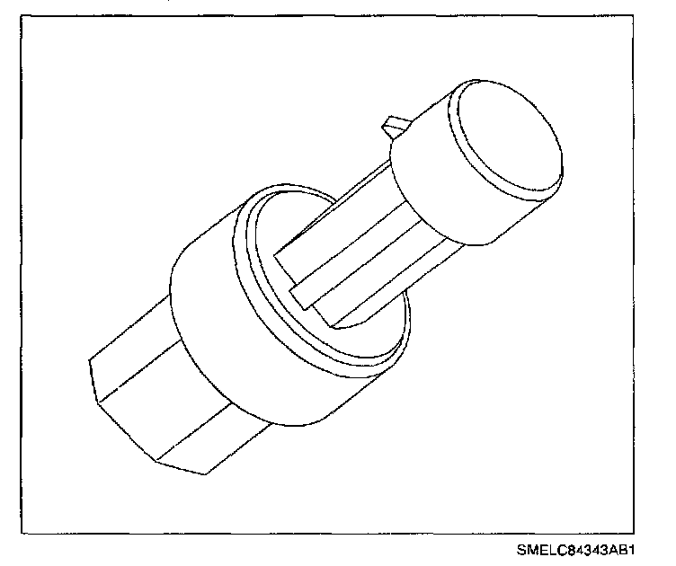 The Air Conditioning (A/C) pressure sensor is located in the A/C high side pressure refrigerant line in front of the air box. The pressure sensor is a transducer that varies resistance according to the difference between the outside air pressure and the pressure inside the high side refrigerant line. The sensor is used by the ECM to determine appropriate cooling fan speed (low, medium or high) during A/C operation. The sensor is also used by the ECM to turn Off the A/C relay if the refrigerant pressure is not within 180-2999 kPa (26-435 psi). The normal maximum range of the sensor can vary from 0.2 volts at 0 psi to 4.9 volts at 453 psi.