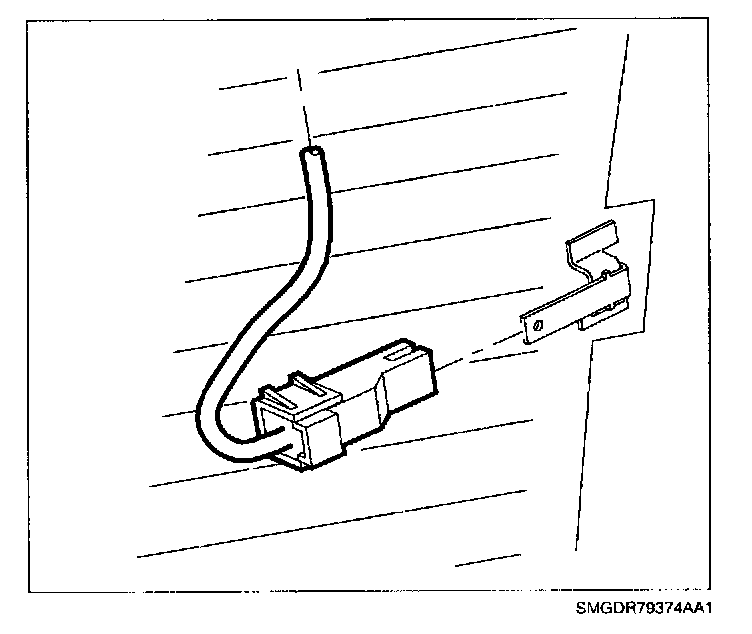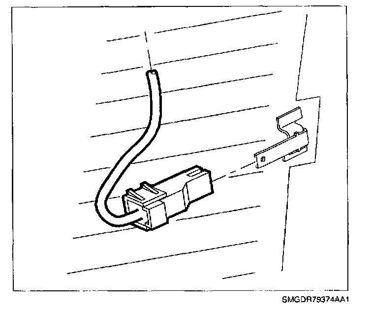 5. Remove electrical connectors from rear window defogger bus bars. Locate electrical connectors and mark location both inside and outside of window with tape so as not to damage wiring/connectors when using power glass removal tool.