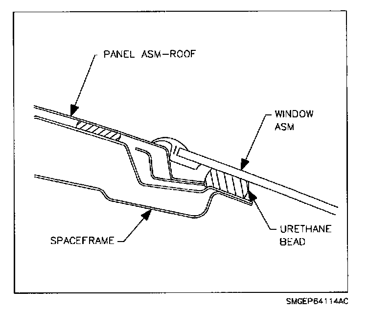 NOTE: Until the new urethane has cured, air pressure from a closing door may cause the window assembly to move. To prevent this, lower one window a minimum of 76 mm (3 in.) before closing the door.
