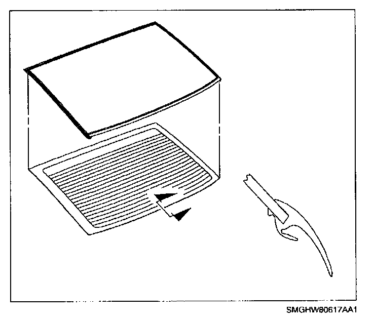 7. With aid of a helper, lift glass into window opening. Align top edge of molding with notches in roof panel. Make certain the lip of the applied molding laps over the roof feature line.