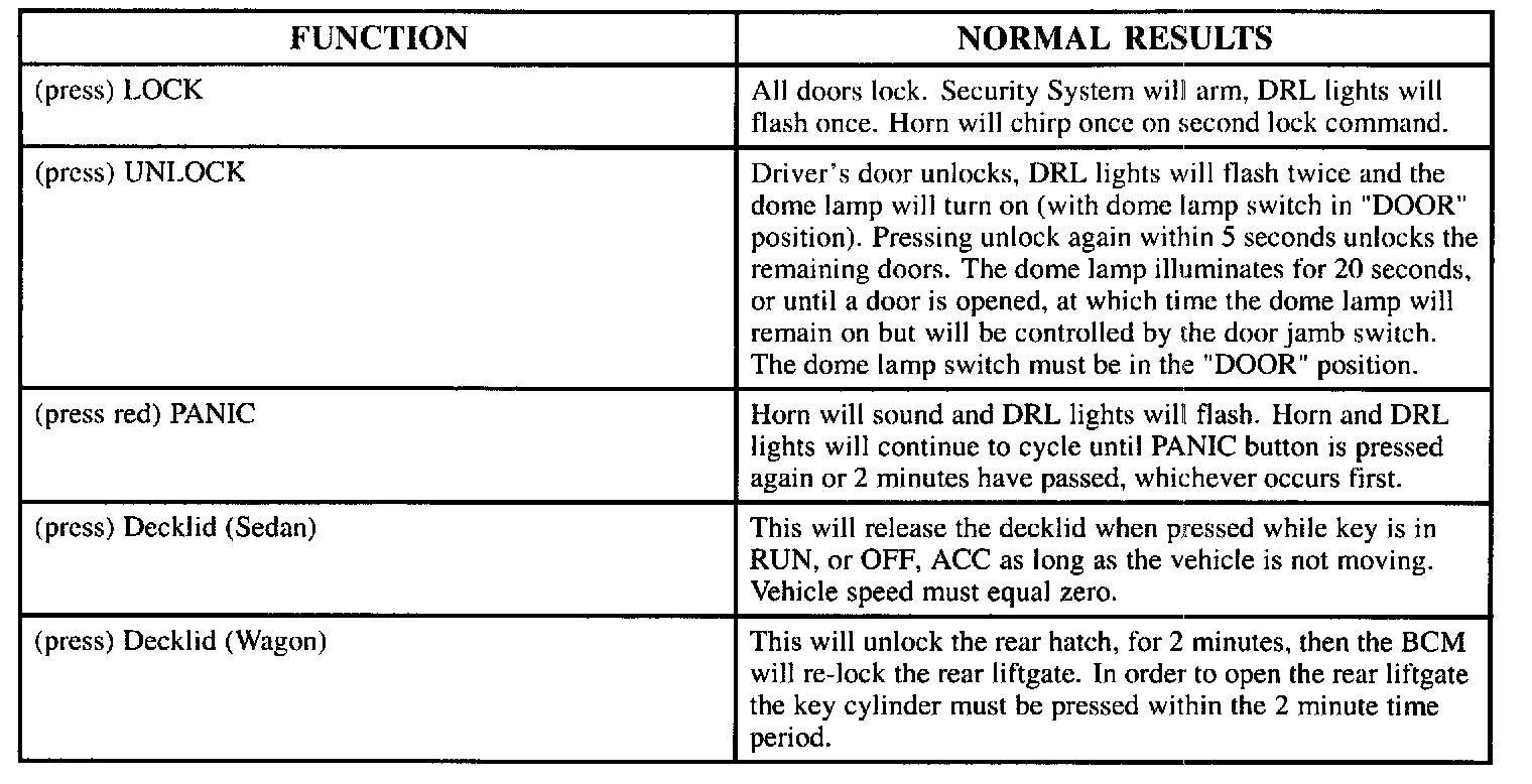 RKE Transmitter Function Check:
