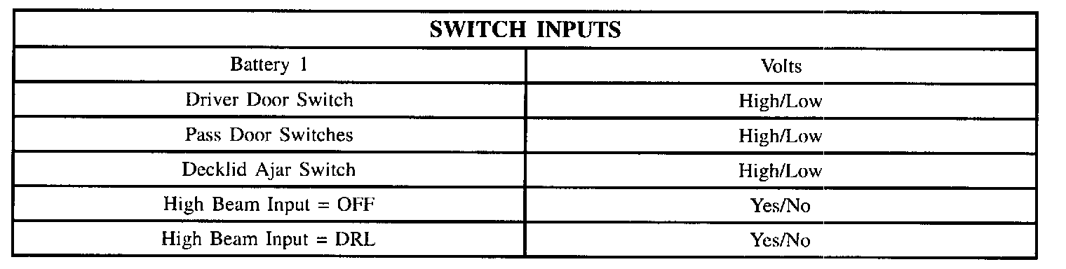 Scan Tool Display - Switch Inputs: