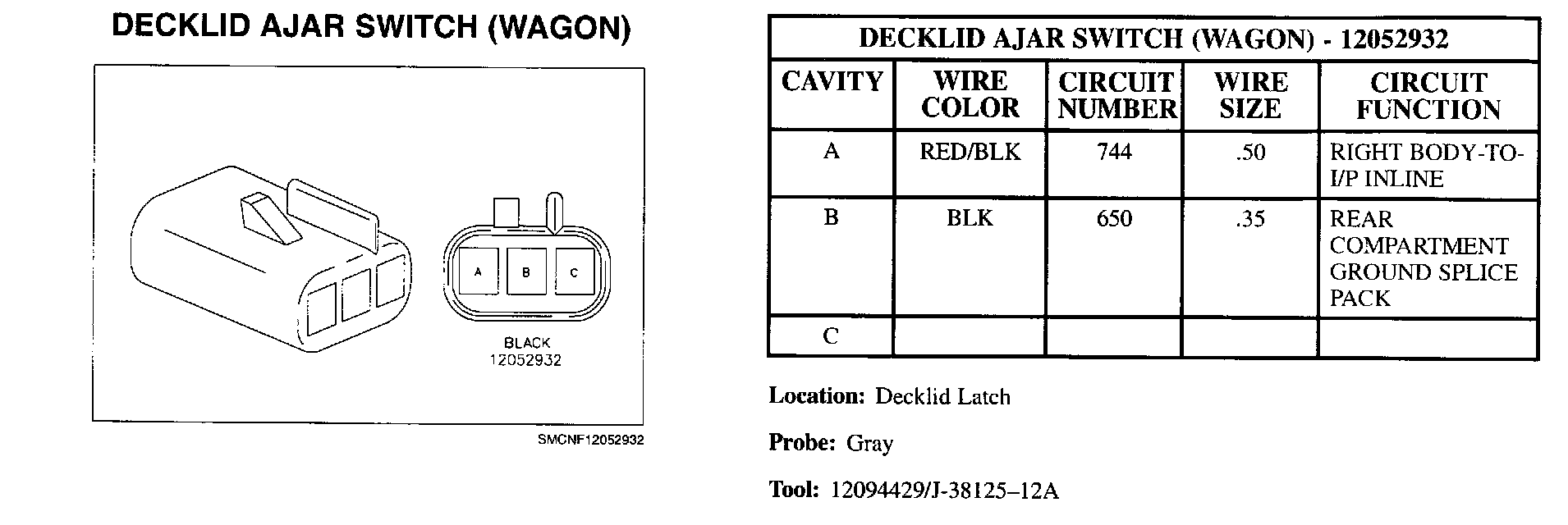 Decklid/Liftgate Release (Sedan/Wagon) Connector Face Views: