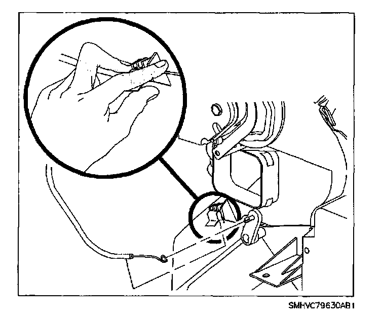 4. Remove cable from temperature door lever by squeezing end of pin and pulling cable eyelet outward.