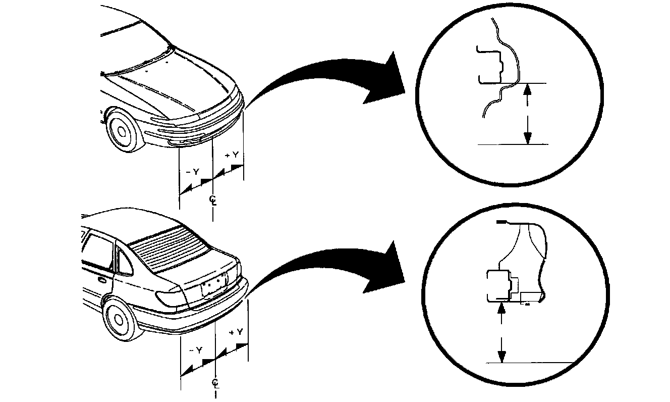 Locating point -Y and +Y is distance from the center line of vehicle according to the following chart.