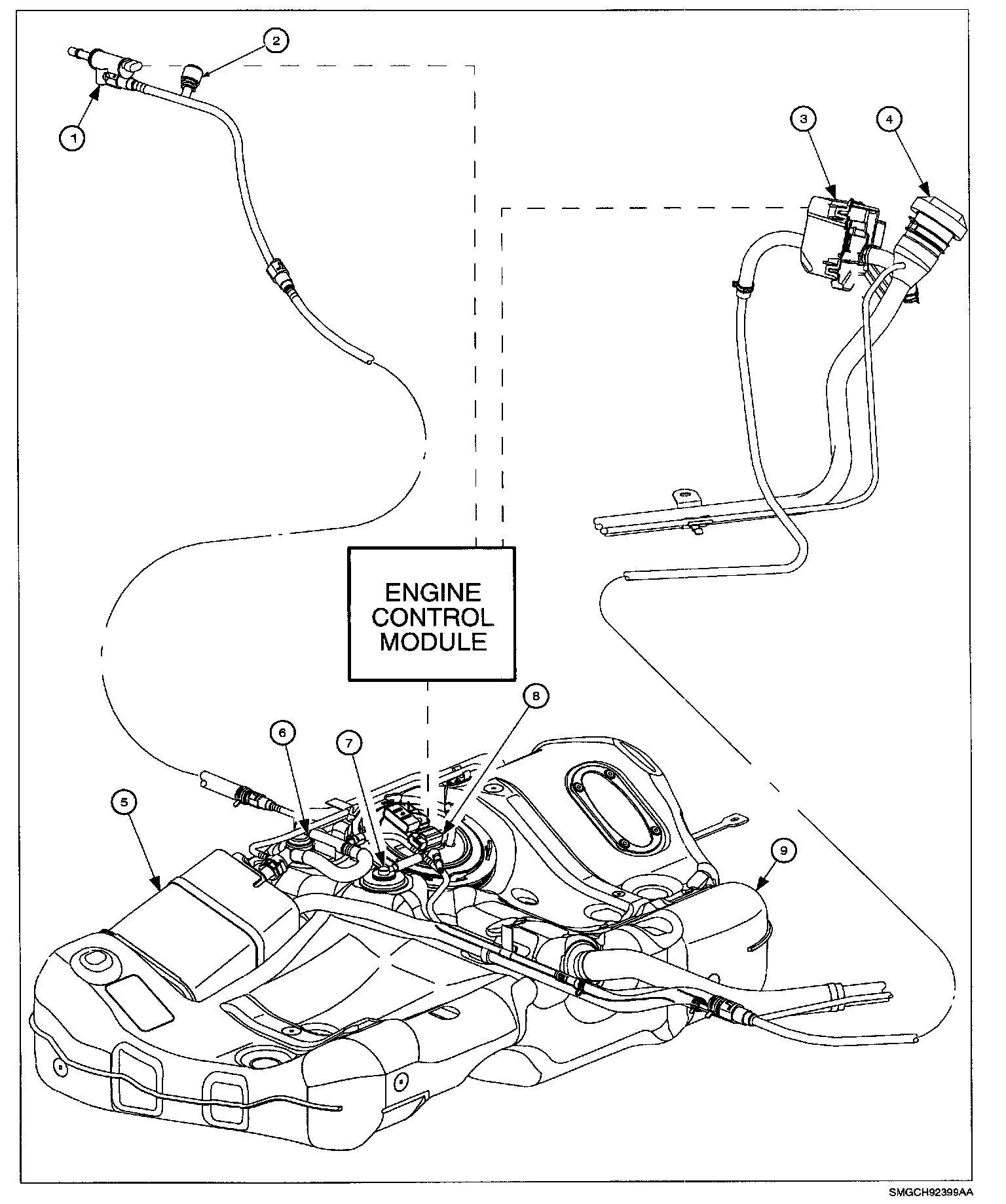The enhanced EVAP system is used to limit unburned fuel vapors (hydrocarbons) from escaping into the atmosphere. Since fuel evaporation in the fuel tank is a normal process, it is necessary to accumulate the unburned fuel vapors so they can be purged into the intake manifold for combustion. The EVAP system consists of: