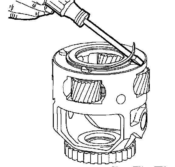 8. Install final drive carrier spiral retaining ring in order to retain planet pinion gear pins.