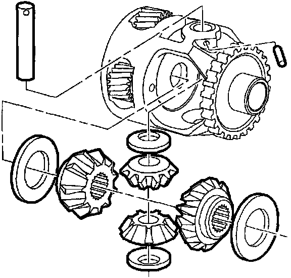 11. Assemble thrust washers onto pinion gears. Retain thrust washers with petroleum jelly.