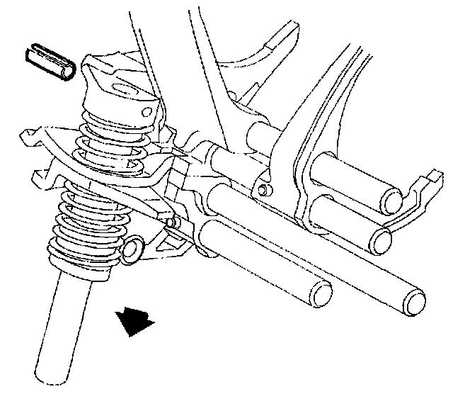 7. If the shift forks, shift shafts, or shift shaft blocks need to be replaced, remove the appropriate retaining pins to the component needing replacement. Always discard used retaining pins and install new pins when reassembling.